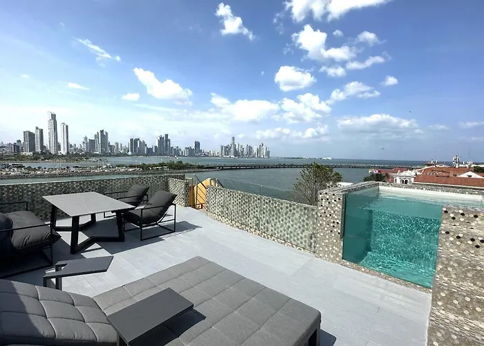 Amazinn Places Penthouse Deluxe, Skyline And Private Rooftop 아파트는 4개 침실을 갖추고 있으며 파나마시티의 해변 숙소입니다. Casco Viejo 지역에 위치한 이 숙소는 앙콘 힐에서 차로 10분 이내의 거리에 있습니다.